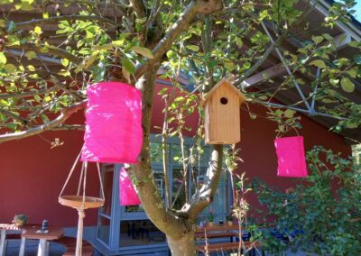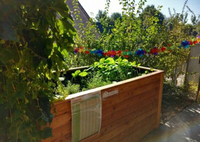 Mit dem grünen Klassenzimmer wurde zeitgleich eine AG Schulgarten gegründet, in der die Schüler*innen unter Leitung von Frau Raff unsere Außenanlage pflegen, das Hochbeet bestellen und auch Insektenhotels sowie Nistkästen bauen. Die Schüler*innen erleben so Selbstwirksamkeit und können Selbstvertrauen aufbauen. Mitunter haben Schüler*innen Vorbehalte gegen alles, was krabbelt – wir versuchen, dem durch Begegnung und positive Erfahrungen entgegenzuwirken. Die Vermittlung von Zusammenhängen in der Natur ist eine wesentliche Aufgabe der AG.