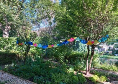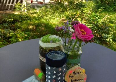 Ehemals ein ungenutzter und verwilderter Schulgarten, jetzt ein grünes Klassenzimmer: Im August 2024 konnten wir als Schulgemeinschaft feierlich unseren einladenden, naturnahen Lernort einweihen! Dazu gab es eine Rallye mit Fragen rund um die Natur, selbst zubereitetes Essen, Musik lief im Hintergrund – es war eine lockere und angenehme Atmosphäre! Die schönen Bankgruppen luden zum Verweilen ein und auch das Wetter hatte es gut mit uns gemeint!