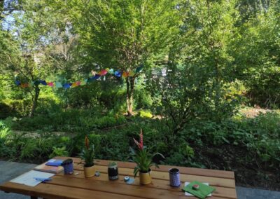 Daneben wird das grüne Klassenzimmer auch einfach als zusätzlicher Lernraum genutzt, in dem man sich gerne aufhält und gemeinsam Lerninhalte erarbeitet. Schüler*innen sind motivierter in einer lernfördernden Umgebung, die anregt und zugleich beruhigt.